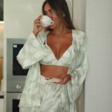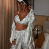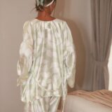 Преміальний шовк охолоджує шкіру, приємно струмує та створює природний сатиновий блиск. М’ятний відтінок із ніжним принтом додає образу легкості.